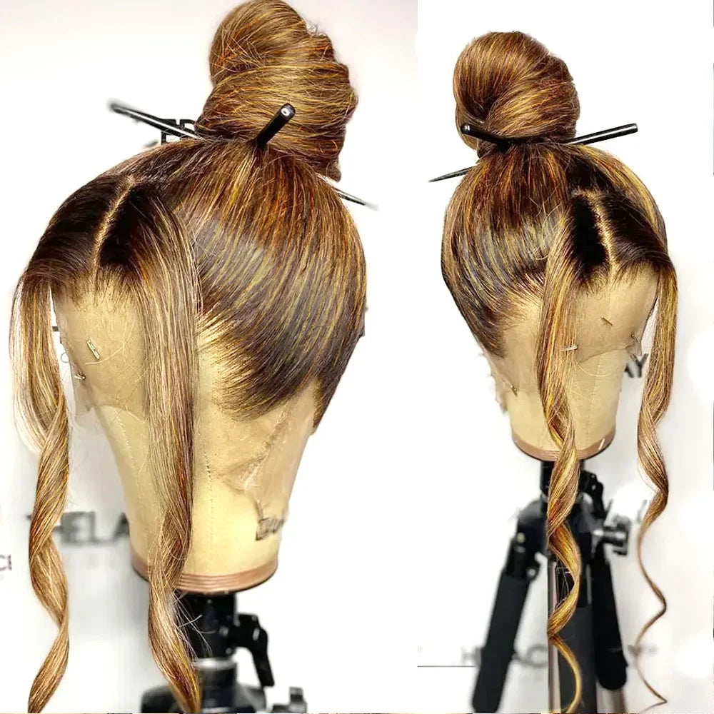 P4/27 Honey Blonde 360 Full HD Lace Frontal Wig 30 Inch Straight Lace Front Wigs Highlight Glueless Wig Human Hair Pre Plucked